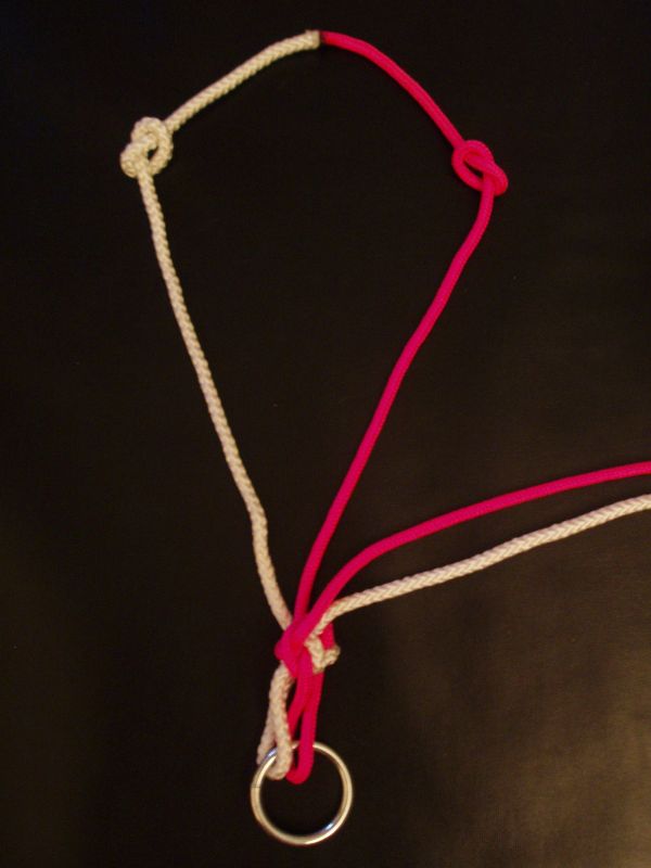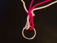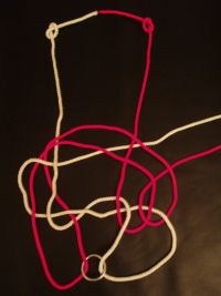 Avec la corde blanche (la plus longue) faire une boucle avec un noeud simple.